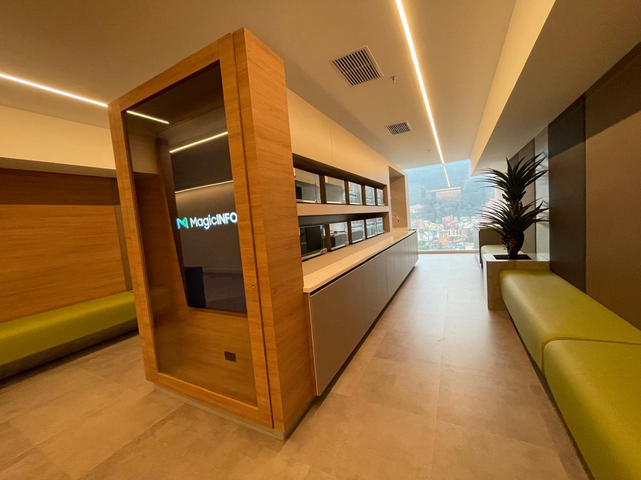 -Sky lobby con zonas de cafetería y salas de reunión Lobby con control de accesos modernos.